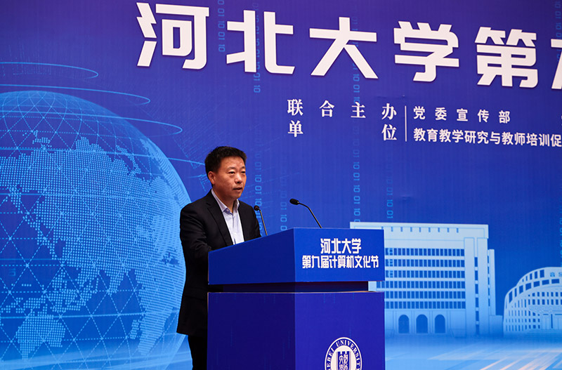 10月19日,河北大学第九届计算机文化节开幕式暨计算机领域企业新技术新产品和大学生科技作品展示活动在七一路校区体育馆成功举办。校党委常委、副校长宋凤轩出席开幕式并致辞,活动由网络空间安全与计算机学院党委书记李海峰主持。